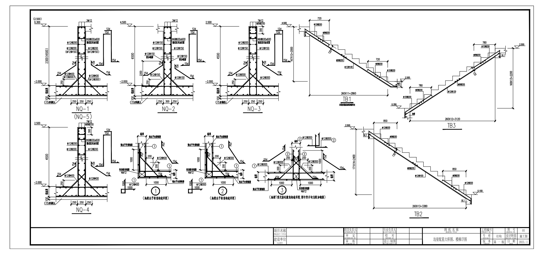 池壁配筋大樣圖---樓梯詳圖